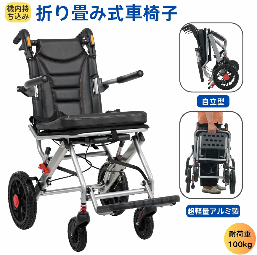 【飛行機持ち込み】車椅子 超軽量 コンパクト 自立式 折りたたみ 介護用品 介助ブレーキ付き ハンドル付き 軽量車椅子 手押し車 介護 施設 入院 病院 四輪