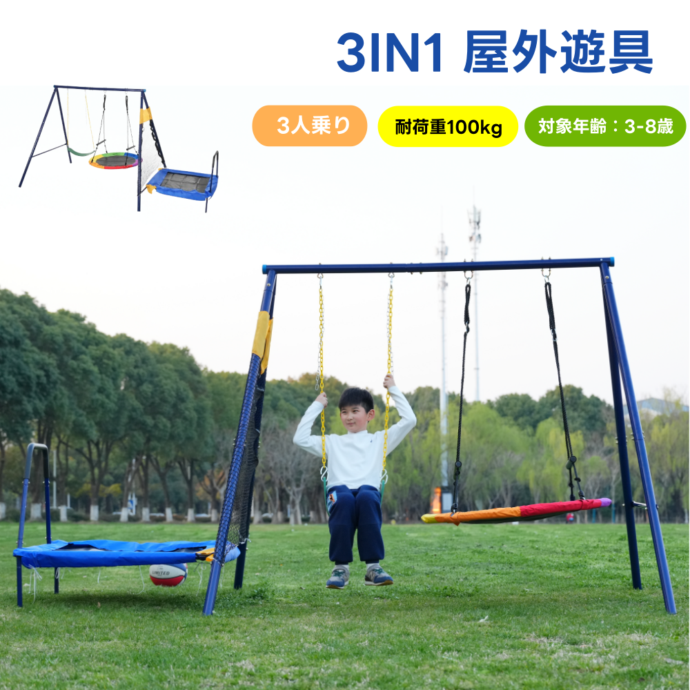 【全ストア5%OFFクーポン利用!】屋外遊具 3in1 大型 ブランコ トランポリン 秘密基地 ジャングルジ 多機能 防水 大型遊具 庭 アウトドア用 子供 大人 フ