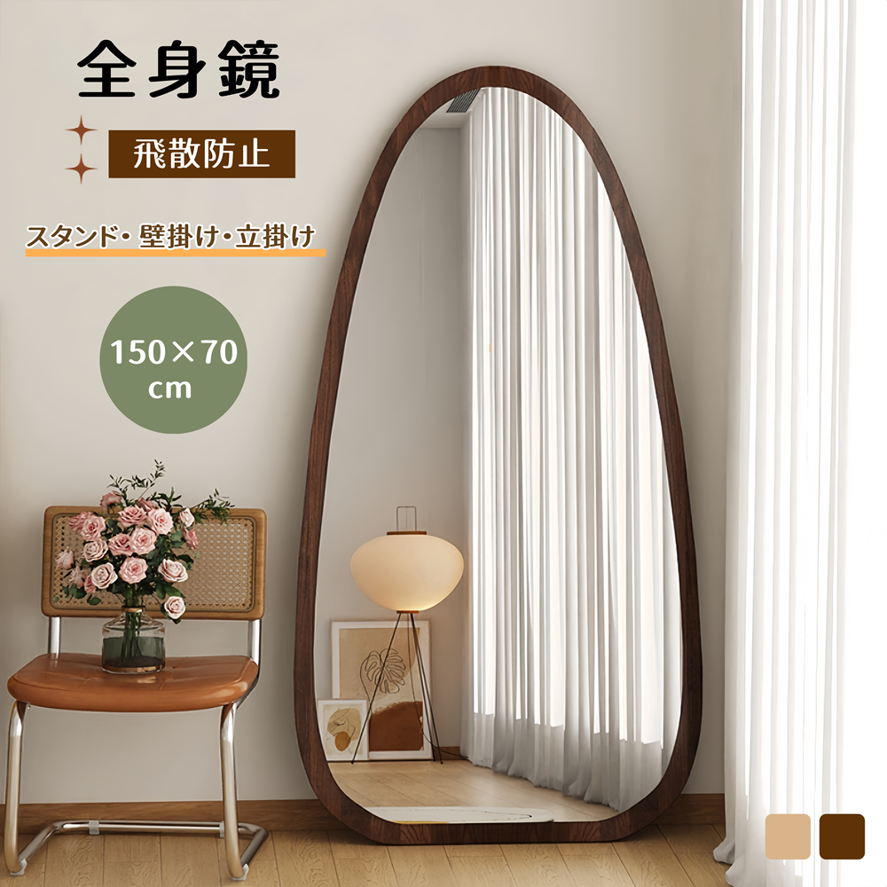 全身鏡 150*70CM 水滴型 姿見鏡 北欧 木目調 スタンドミラー 壁掛けミラー 立てかけ おしゃれ 飛散防止 姿見 鏡 ミラー 韓国 モダン 玄関 かがみ 大型