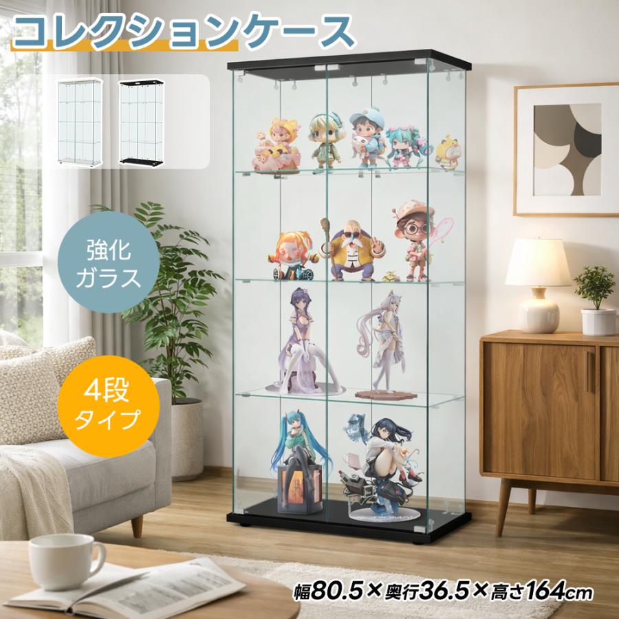 【全店5%OFFクーポン利用!】コレクションケース 両扉タイプ 大型 ワイドタイプ ガラスディスプレイキャビネット フィギュアケース 4段 強化ガラス 全面