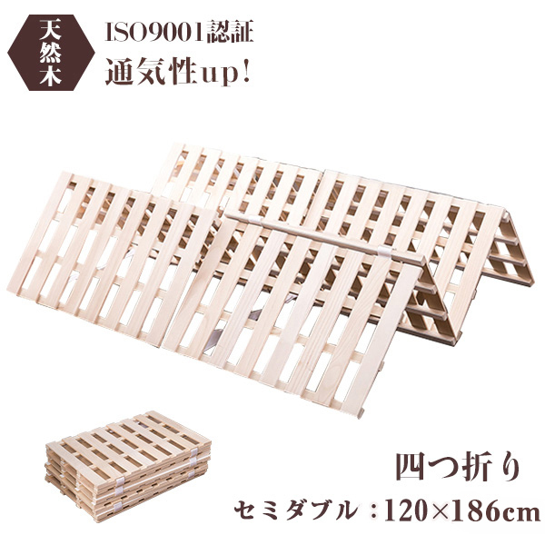 すのこベッド セミダブル SD 四つ折り 折りたたみ 天然桐 すのこ68本 折りたたみベット ベッドフレーム スノコマット すのこベッド