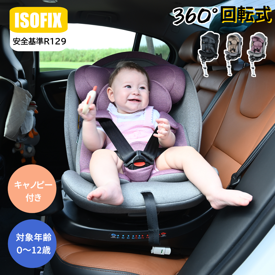 チャイルドシート 新生児 ISOFIX 0歳〜12歳 360度回転式 40〜150cm ジュニアシート 調節可能 洗える キャノピー付き ベビーシート ドリンクホルダー付き