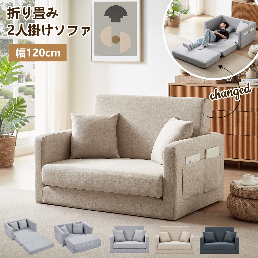 \爆買WEEK★全品5%OFFクーポン実施中/ソファー ソファーベッド 折りたたみ 2人掛け 2P 幅120cm 3way ローソファー ソファーベッド マットレスソファ