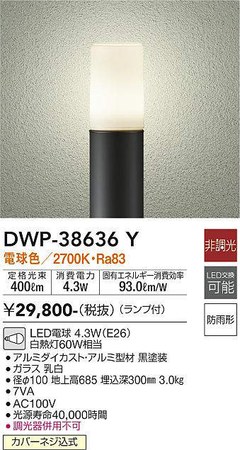 大光電機(DAIKO) DWP-38636Y アウトドアライト ポール ランプ付 非調光 電球色 H=685mm 防雨形 ブラック