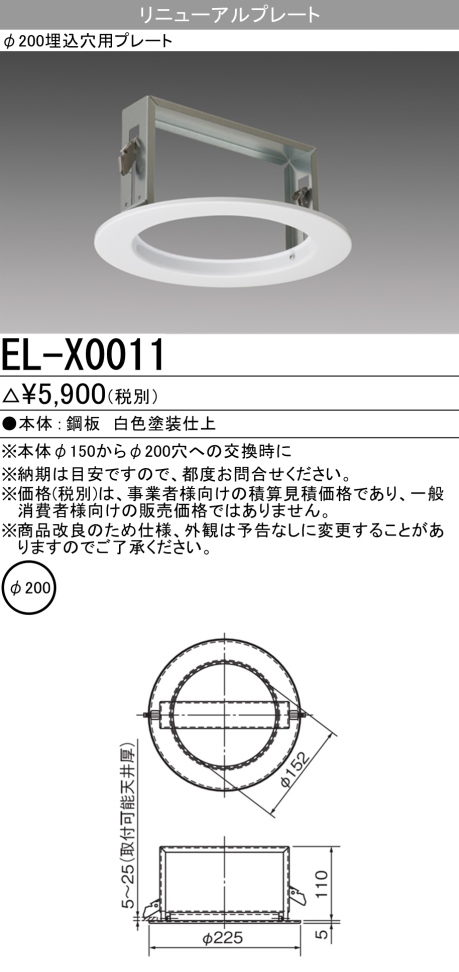 三菱 EL-X0011 LED照明部材 φ200埋込穴用リニューアルプレート
