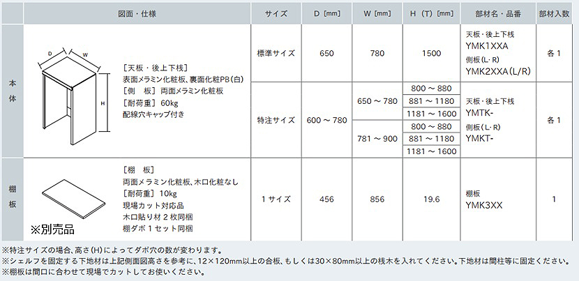 アイカ工業 ガス衣類乾燥機用シェルフ ランドリスタ用棚板 YMK3XX 奥行456×幅856×厚さ19.6mm ワンサイズ 現場カット対応品