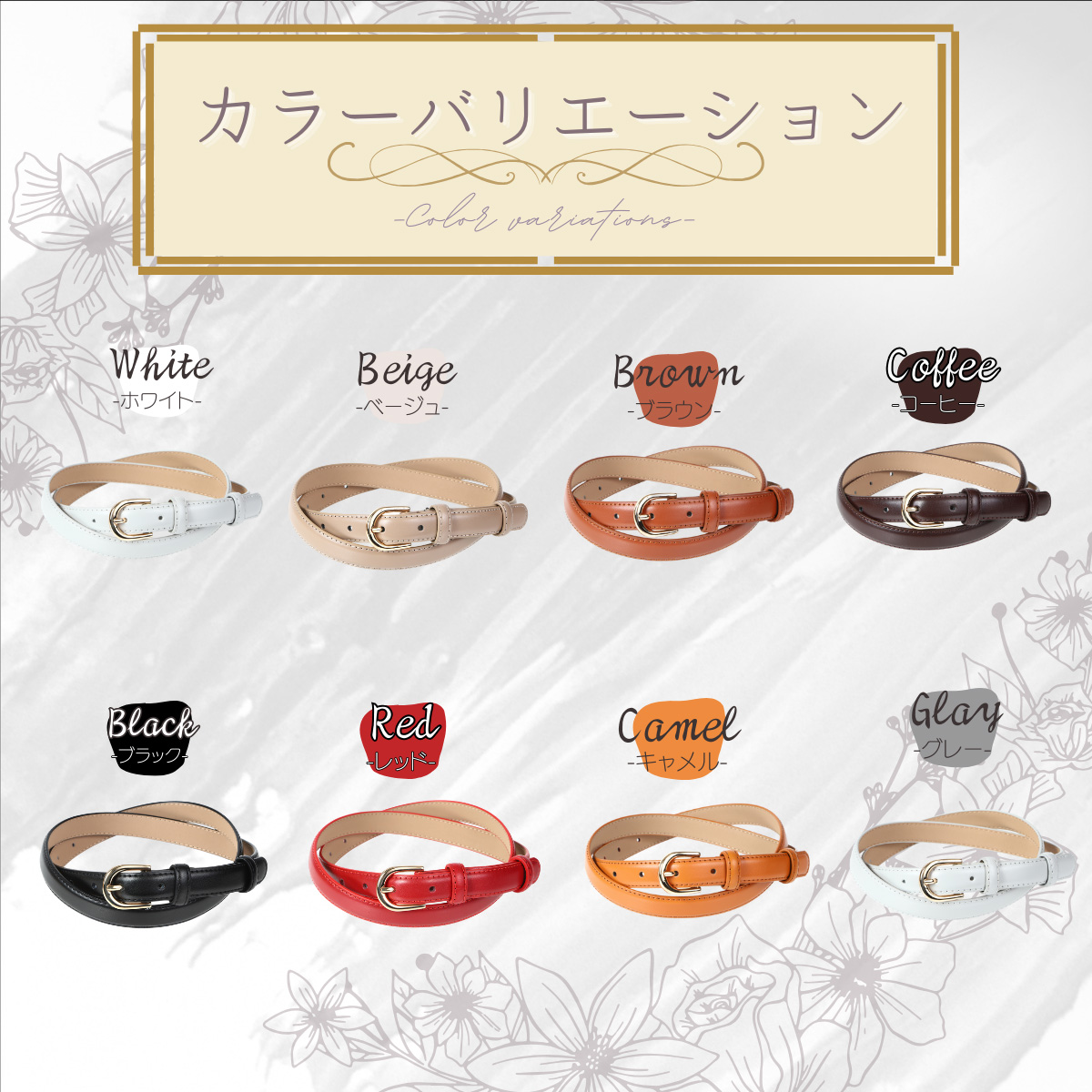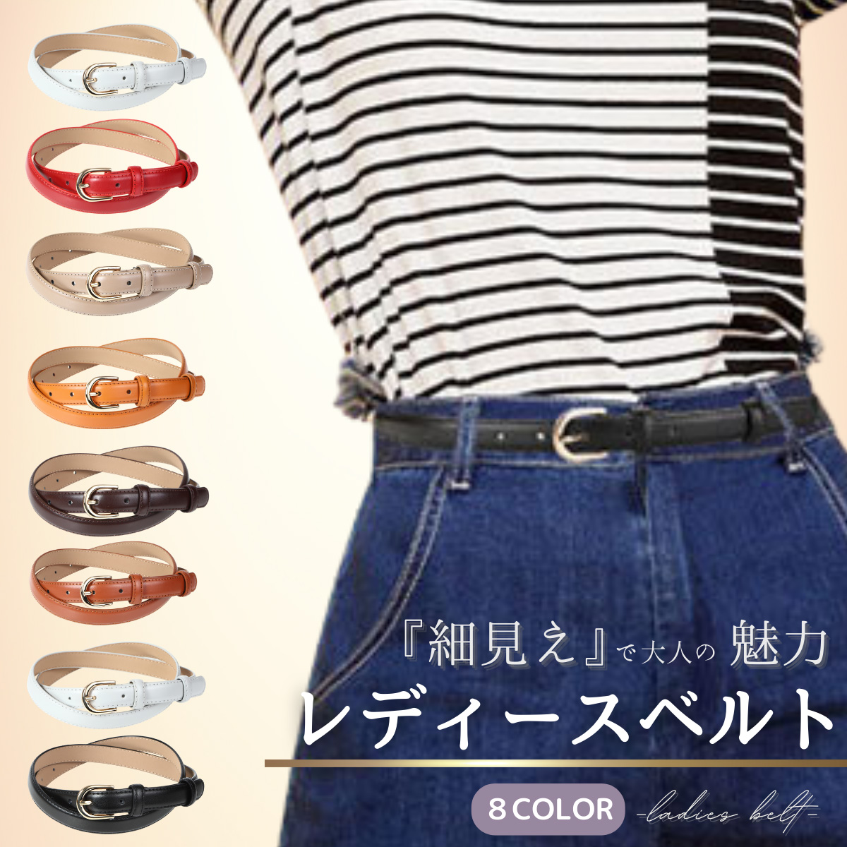 ■商品名: ベルト レディース 本革 細い ジーンズ 黒 白 赤