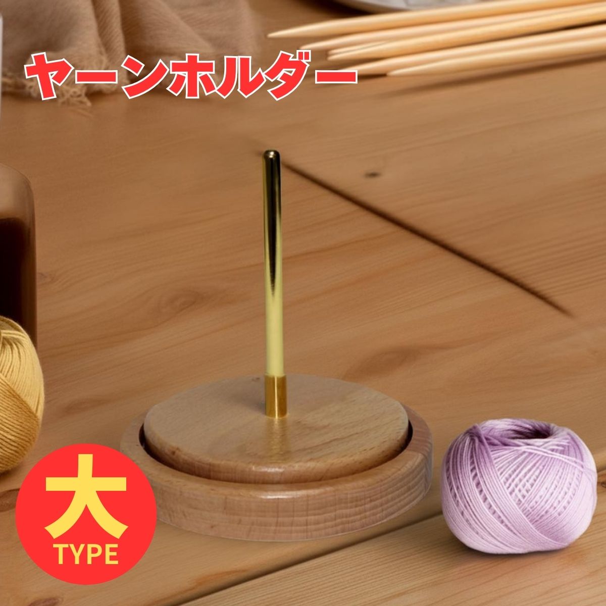 ヤーンホルダー 毛糸ホルダー 大タイプ 編み物 毛糸 ホルダー スタンド 木製 持ち運び かわいい おしゃれ 携帯用 取り外し 絡まらない