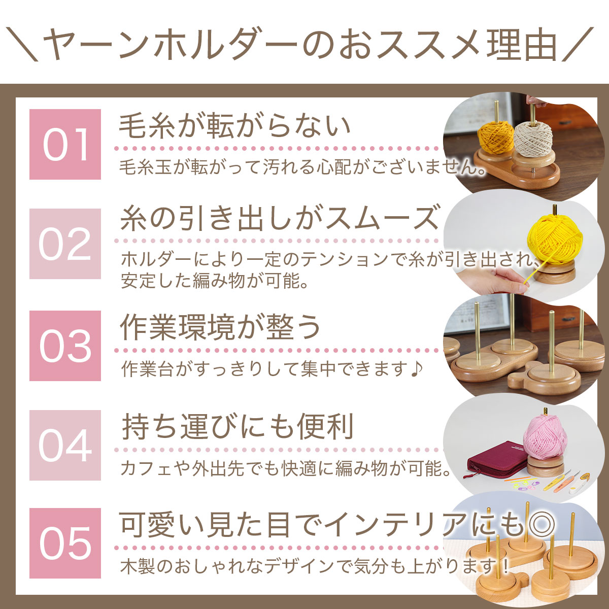 ヤーンホルダー 毛糸ホルダー 小タイプ 編み物 毛糸 ホルダー スタンド 木製 持ち運び かわいい おしゃれ 携帯用 取り外し 絡まらない