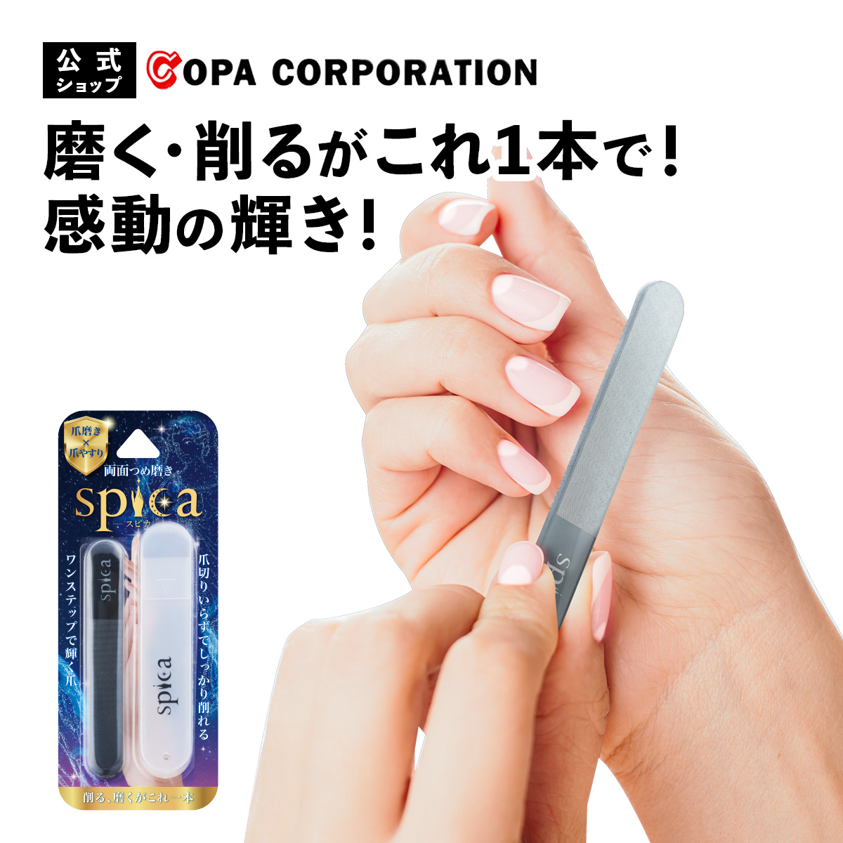 | 使用上の注意 | ●マニキュアやジェルネイル等は落としてからご使用ください。 ●乳幼児の手の届かないところで保管してください。 ●爪が薄くなる恐れがあるので、磨きすぎにはご注意ください。 ●使用後は水で洗い、乾燥させてからケースにいれて保管してください。 破損の恐れがあるので、無理に力を加えたりしないでください。破損した場合は使用しないでください。 ●消耗品です。効果が薄くなってきたら買い替えをお勧めします。 ●用途以外に使用しないでください。 ●爪に異常がある場合は使用しないでください。 ●やすり面で爪の表面を磨くと傷がつくため、表裏の間違いにはご注意ください。 |