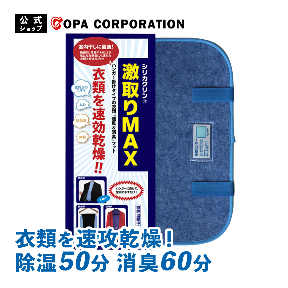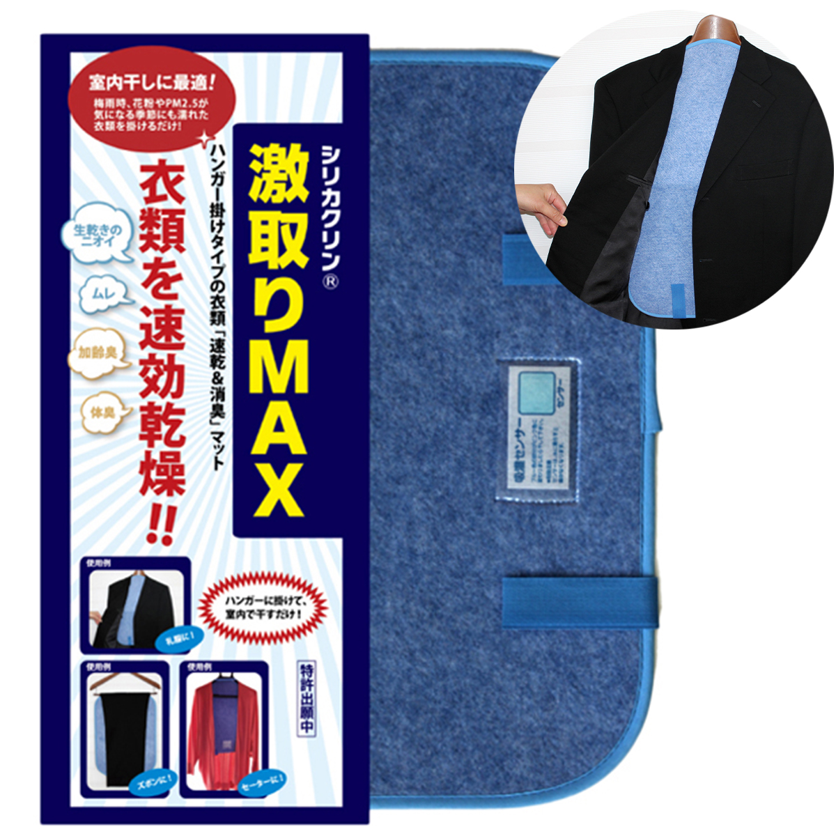 シリカクリン「激取りMAX」は、スーツや上着、濡れた衣類などの湿気や嫌なニオイを取り除くために開発されました。