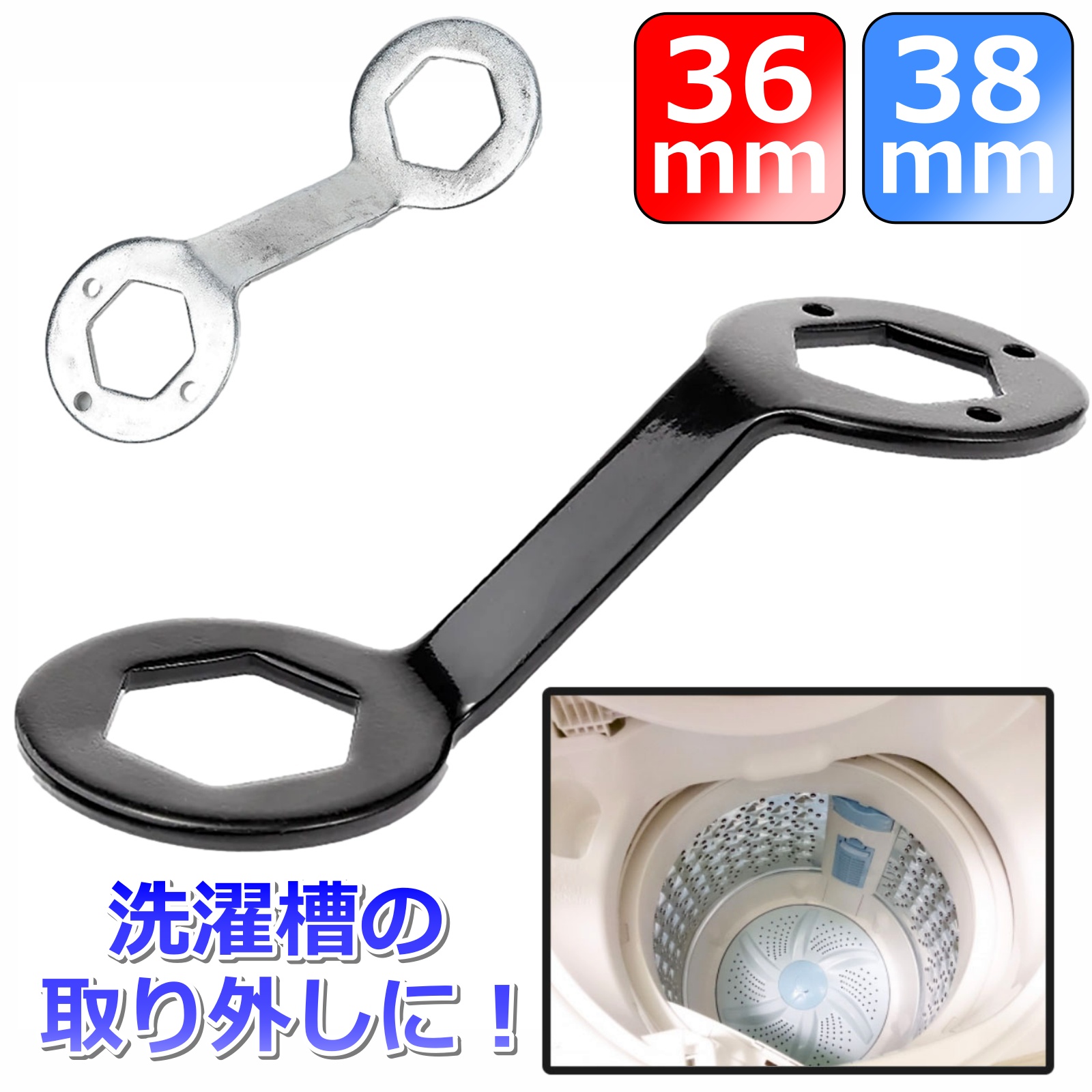 六角レンチ 洗濯機 洗濯槽 レンチ 36mm 38mm メガネレンチ 六角スパナ めがねレンチ 36 38 水栓レンチ 薄型スパナ 38ミリ スパナ