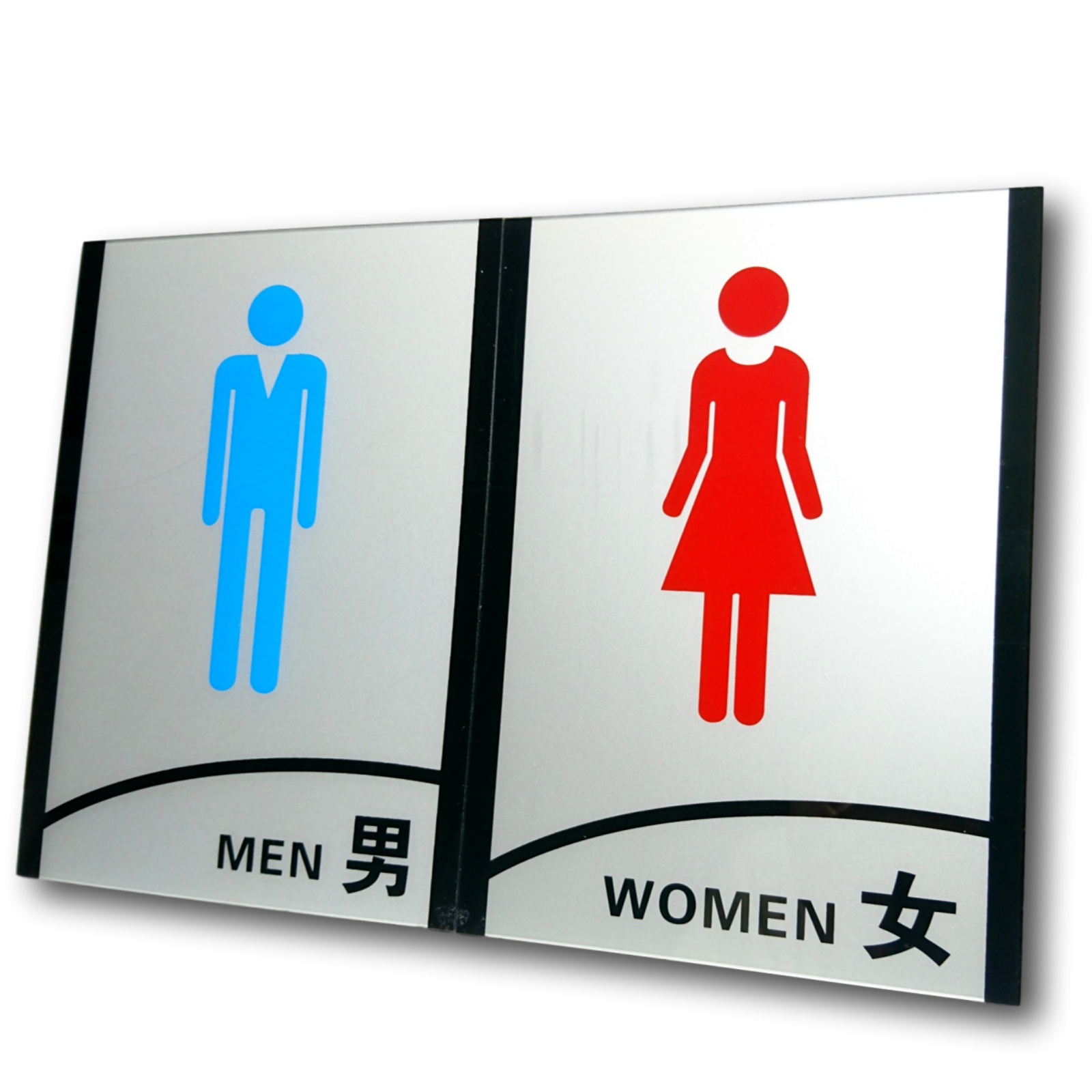 男性・女性別のプレートで、鮮明な赤と青の色別、漢字・英語併記しているためどなたでも分かりやすいデザインとなっております。