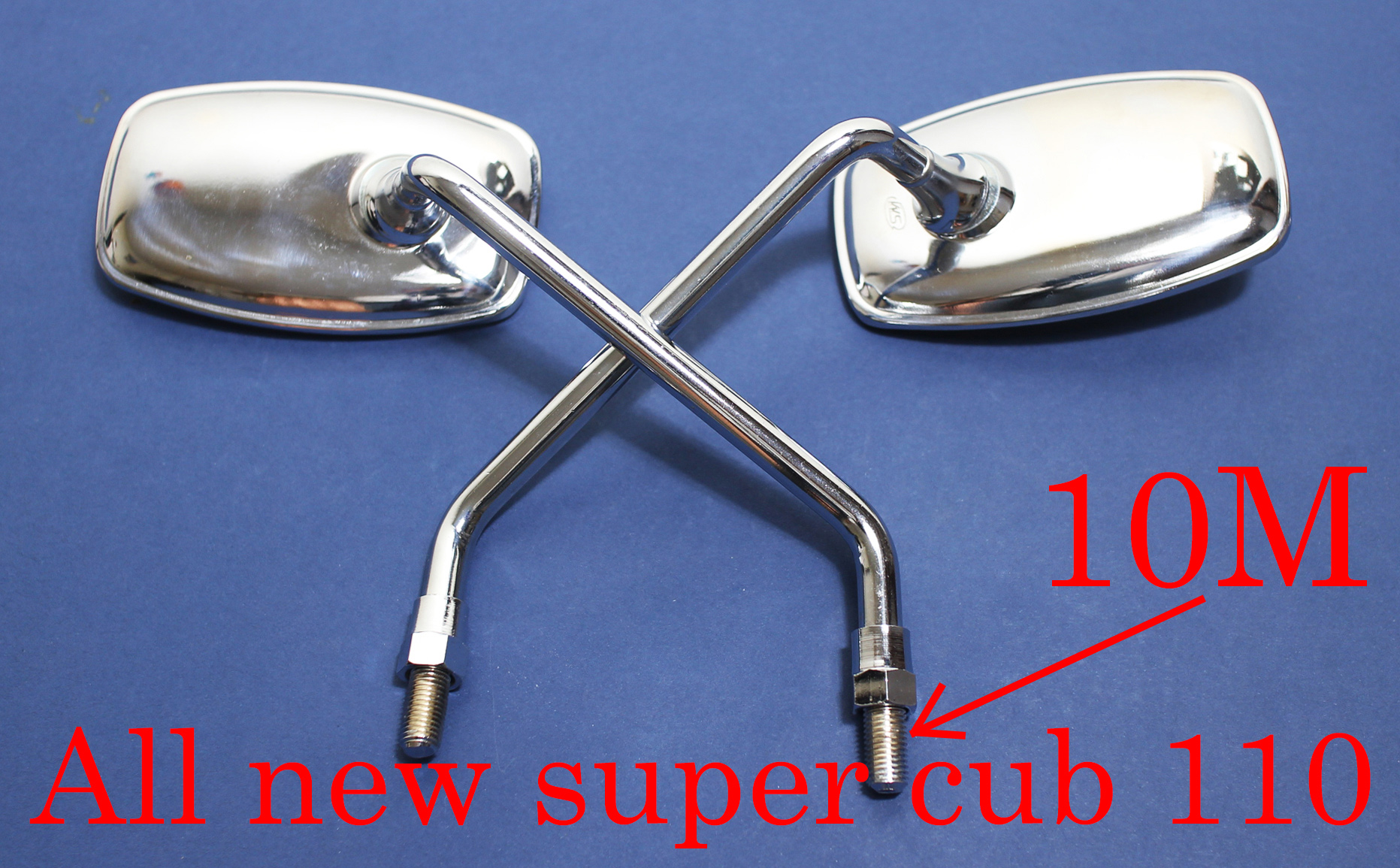 ALL NEW スーパーカブ 110 レトロ デザイン クロムメッキ 四角ミラー(10Mナット正ネジ汎用部品)