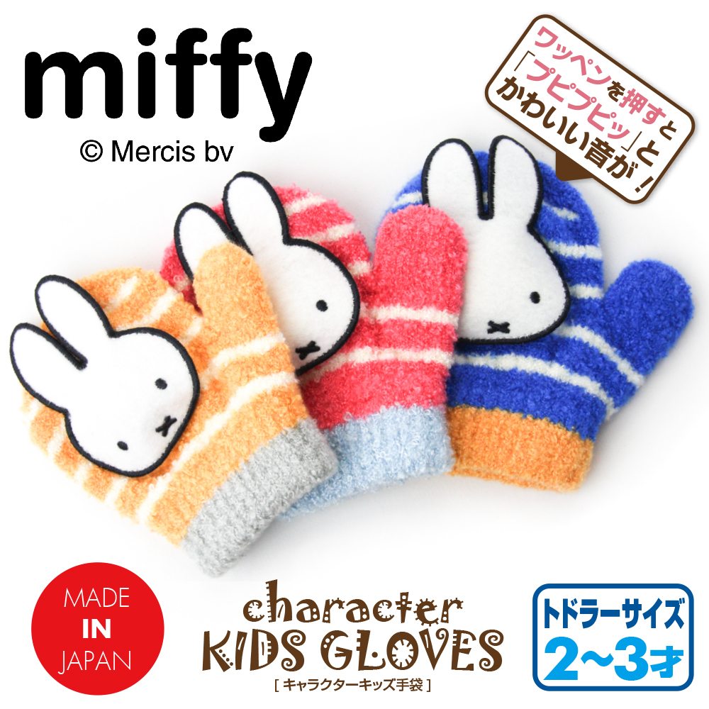 | ワッペンを押すと「プピプピッ」とかわいい音が鳴る!大人気のミッフィーあったかミトン手袋 全3色 日本製 |