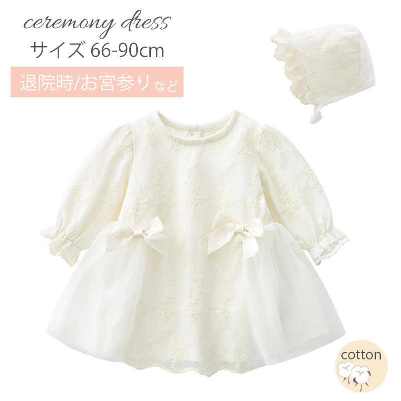 無地 60cm 70cm 50センチ 60センチ 70センチ オールシーズン セレモニードレス ベビードレス 新生児 赤ちゃん 退院 産着 お宮参り 女の子 長袖 ハーフバースデー ホワイト