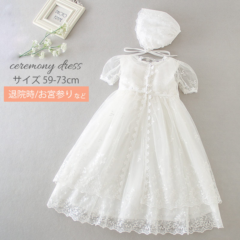 セレモニードレス ベビードレス お宮参り 退院 結婚式 半袖 女の子 女 女児 新生児 白 春 夏 秋 冬 フォーマル 出産祝い ベビー服 ホワイト 白色