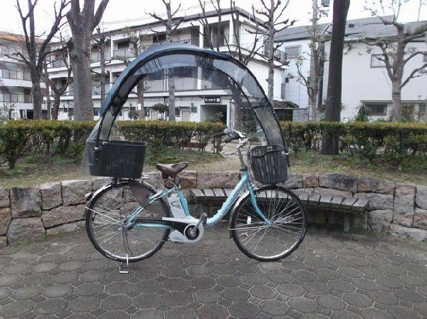 商品は一般自転車はもちろん、電動アシスト自転車、電動自転車に取付が可能な屋根商品です。