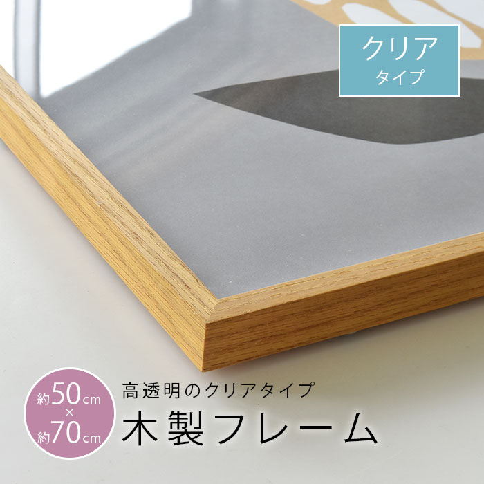 木製ポスターフレーム(クリア) ポスターサイズ 50×70cm ポスター、写真などを飾っていただける、当店オリジナルの木製フレームを作りました!オーク材を使用しており、無垢材ならではのナチュラルで優しい雰囲気が楽しめます。サイズは50×70cmで、縦向き、横向き、どちらにもお使いいただけますよ。