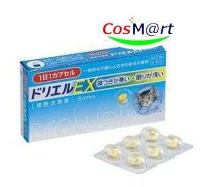【特徴】 | ●こんなとき、こんな方の一時的な不眠に ○ストレスが多く、眠れない ○疲れているのに、神経が高ぶって寝つけない ○心配ごとがあって、夜中に目が覚める ○不規則な生活で、睡眠リズムが狂い、寝つけない ●ドリエルEXの特長 ○有効成分「ジフェンヒドラミン塩酸塩」の働きで、寝つけない、眠りが浅い時などの症状にすぐれた効果をあらわします。 ○中身が液状のカプセルタイプ。1回1カプセルを就寝前に服用してください。 ○ラベンダーアロマ配合。 ●ドリエルEXの効きめ成分 ドリエルEXの効きめ成分(ジフェンヒドラミン塩酸塩)は、皮ふのかゆみをしずめたり、くしゃみや鼻水などのアレルギー症状をおさえる目的で広く使われていますが、服用により眠気をもよおすという作用があります。 ドリエルEXはこのジフェンヒドラミン塩酸塩の持つ眠気の作用を応用してつくられた医薬品です。 |