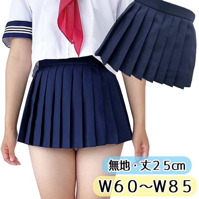 マイクロミニ プリーツスカート 25cm丈 ウエスト60〜85cm No.0002 無地 濃紺 ミニスカート スカート 膝上丈 単品 wbb-015 コスチューム コスプレ 衣装 制服 学生
