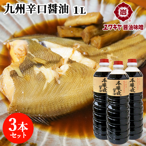 大分県産丸大豆仕込み 本醸造醤油 辛口 1L×3本セット 熟成丸大豆もろみ使用 ユワキヤ醤油 送料無料
