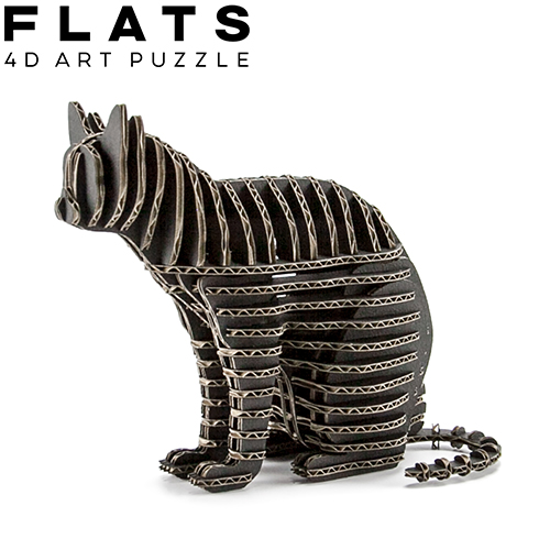 FLATS 4D アートパズル 猫段 ねこだん(CAT110A_black) 座り ブラック シート3枚/64パーツ ペーパークラフト メール便送料込