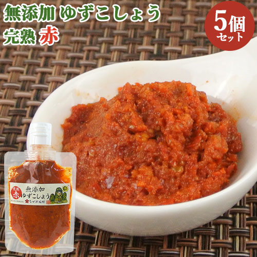 自家農園の柚子と唐辛子のみ 柚子こしょう 赤(完熟) カウパック 100g×5 ながお梅園 送料込