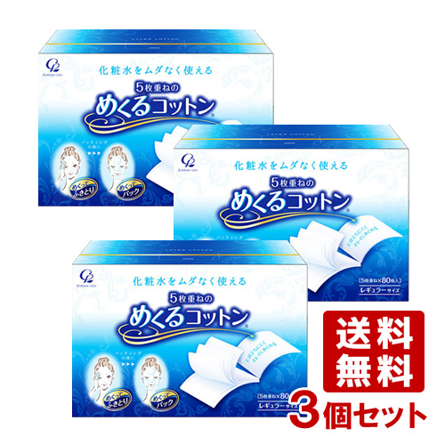 3個セット めくるコットン レギュラーサイズ 5枚重ね×80枚入 コットン・ラボ(Cotton labo) 送料無料