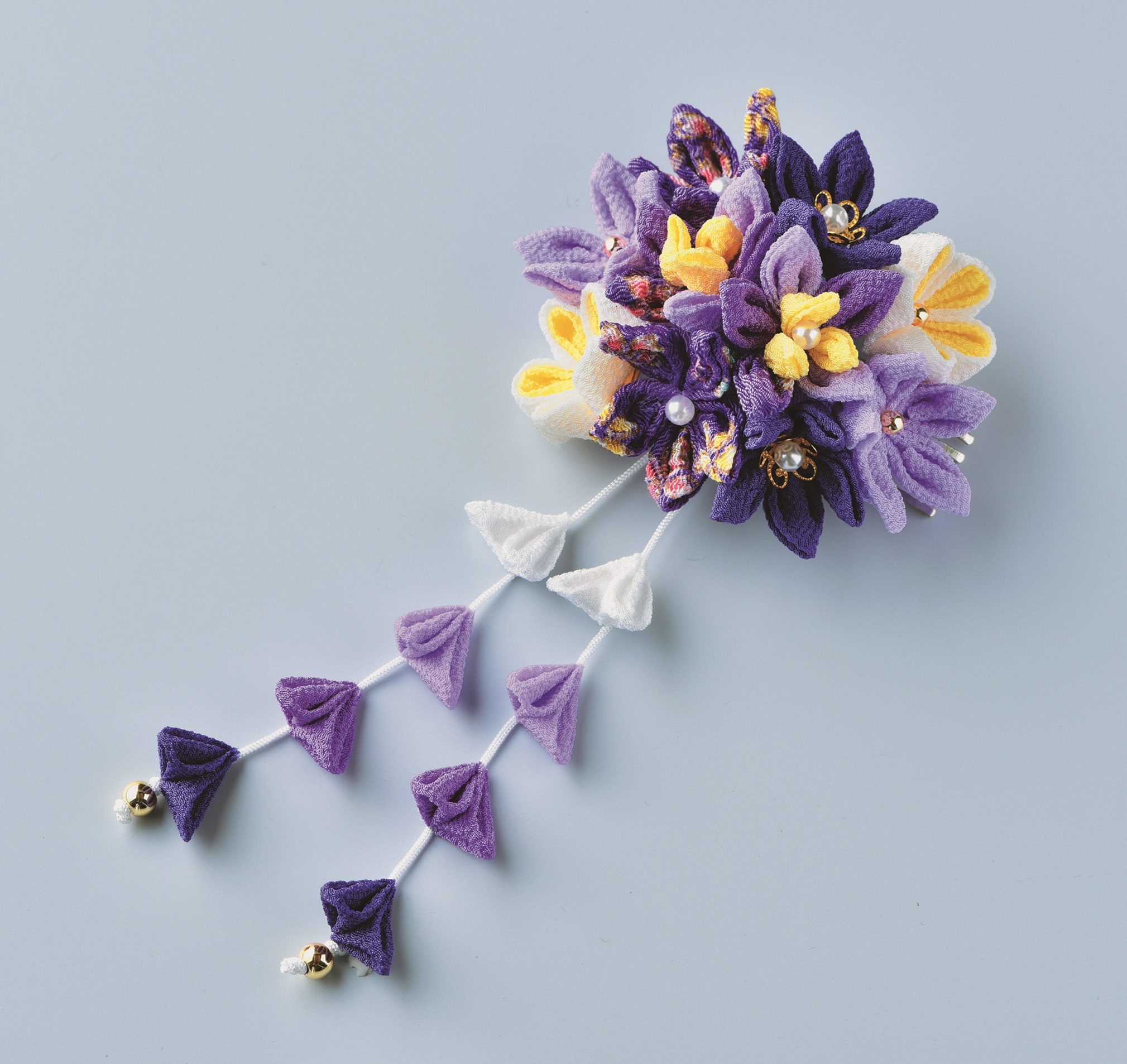 商品名: ちりめんつまみ細工 はなやぎ髪飾り(紫) LH-428
