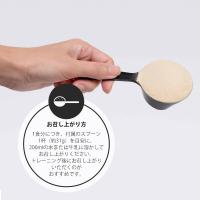 | 1食分につき付属スプーン山盛り1杯(約33g)を目安に、200mlの水または牛乳に溶かしてお召し上がりください。 トレーニング後にお召し上がりいただくのがおすすめです。 混ぜる際は新しくなった国内製プロテインシェイカーを是非ご使用ください。 |