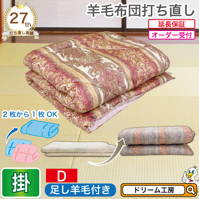 羊毛合掛布団 打ち直し ダブル リフォーム 仕立て直し ウール 掛け 布団の打ち直し 布団のダニ退治方法 布団が臭い
