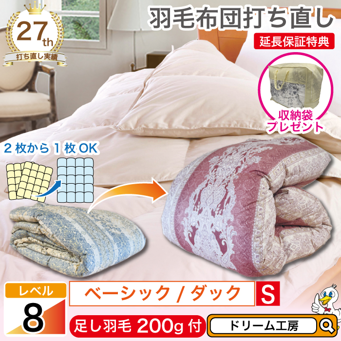 羽毛布団 シングル 打ち直し リフォーム クリーニング 収納袋 プレゼント オールシーズン 春夏秋冬 肌 合 掛 綿100% サイズ変更