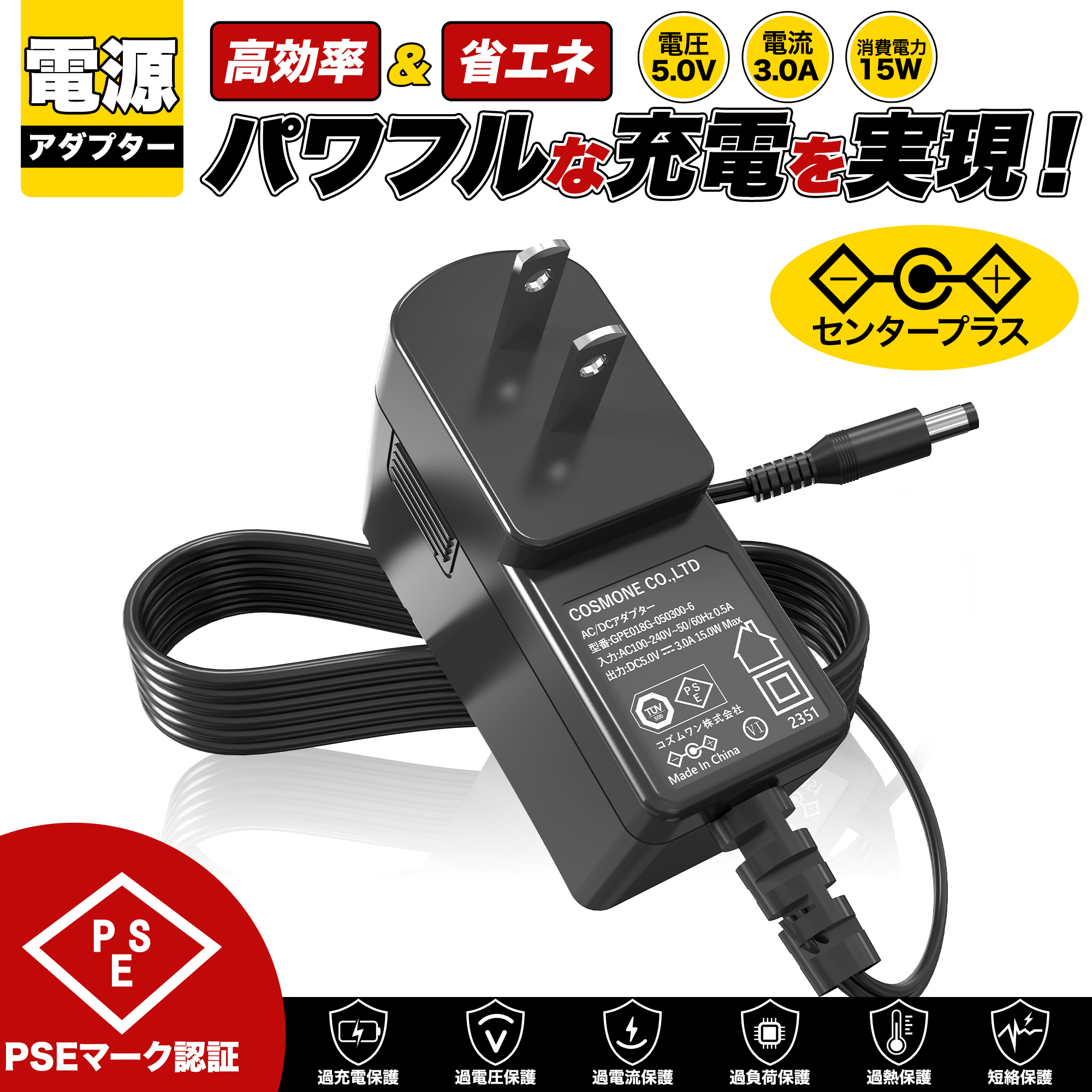 汎用ACアダプター 5V 3A 最大出力15W PSE取得品 出力プラグ外径5.5mm(内径2.1mm) 1年保証付