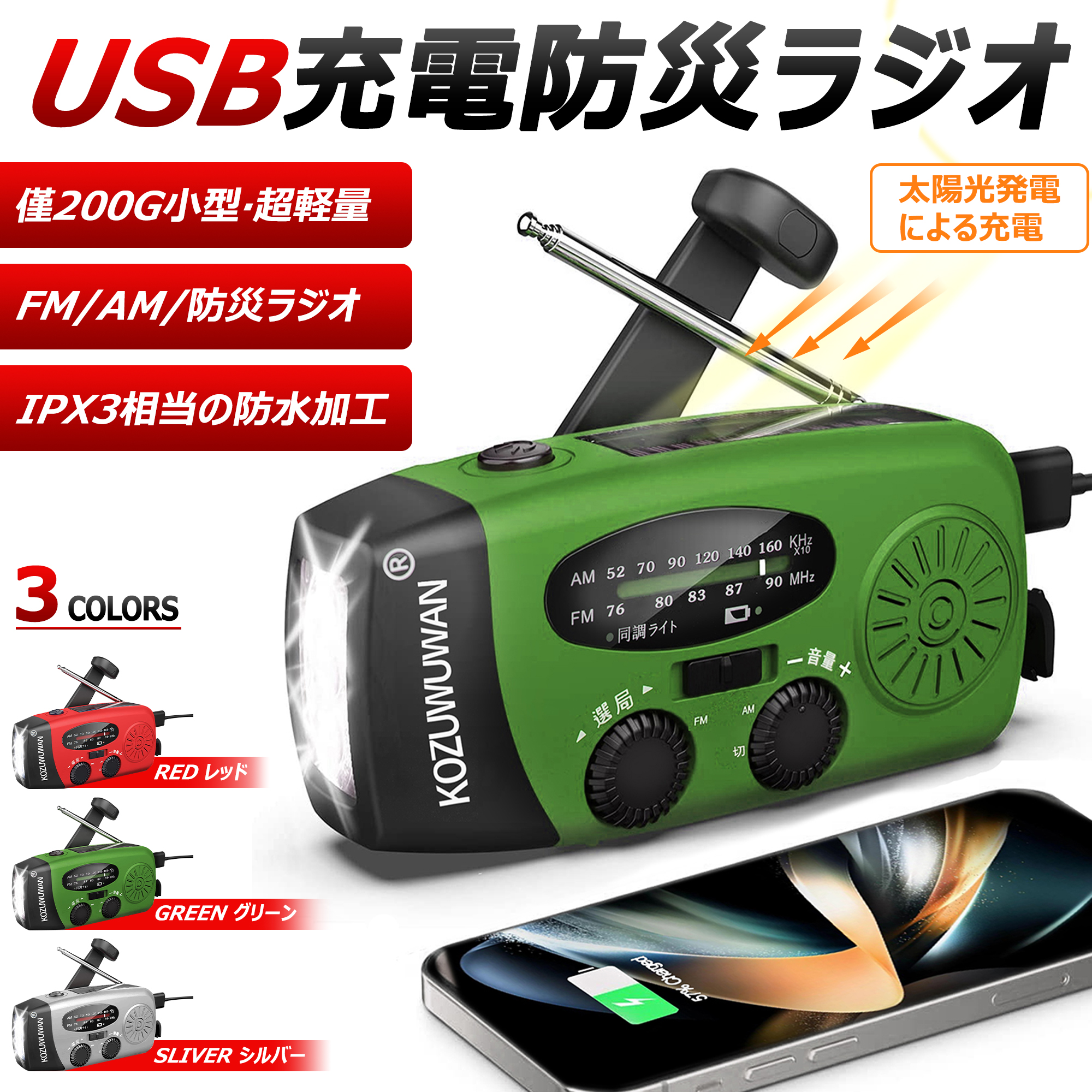 | 機能 | FM/AM/ラジオ、緊急アラーム、モバイルバッテリー、懐中電灯(LED) |