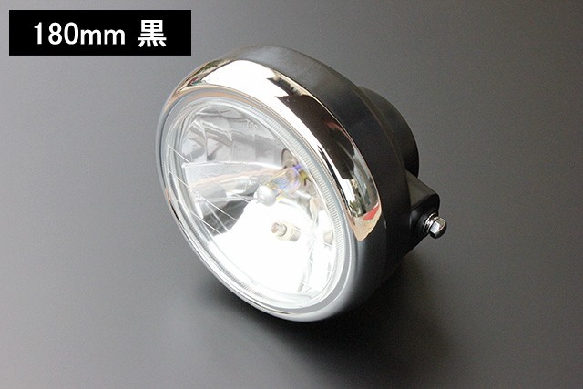 黒 180mm ヘッドライト クリア ガラスレンズ 新品 汎用