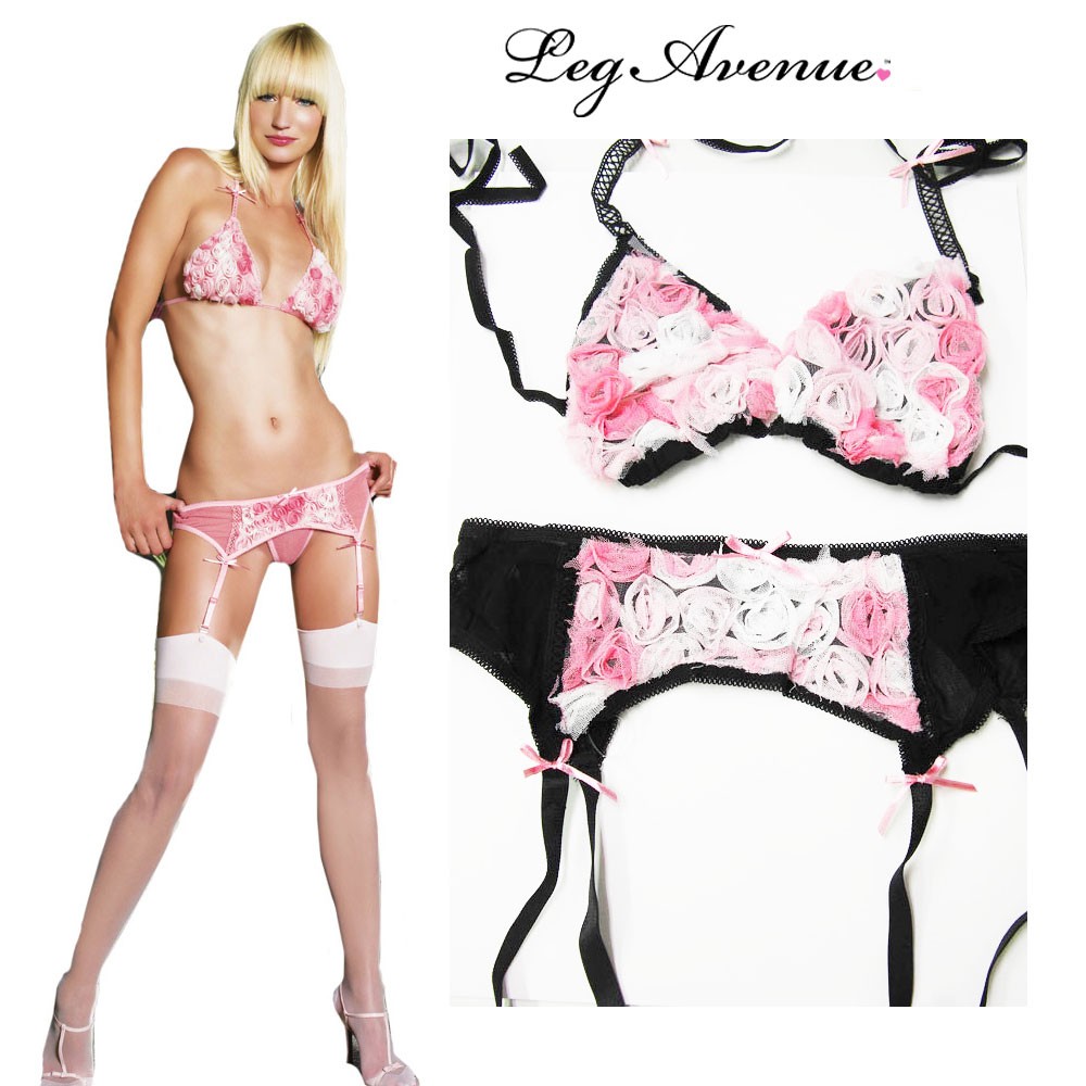 ランジェリーセット ブラ ガーターベルト ショーツ ローズモチーフ ブラック