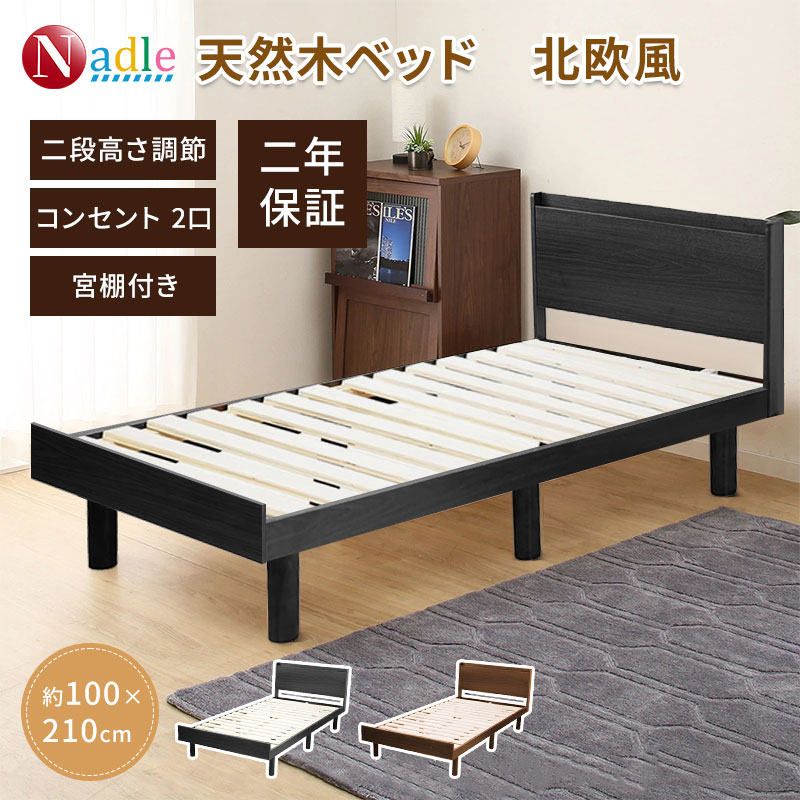 爆買 NADLE ベッド すのこベット すのこ シングル ベットフレーム 無垢材 ローベッド フロアベッド おしゃれ セミダブル ダブル コンセント付き すのこ 通気性