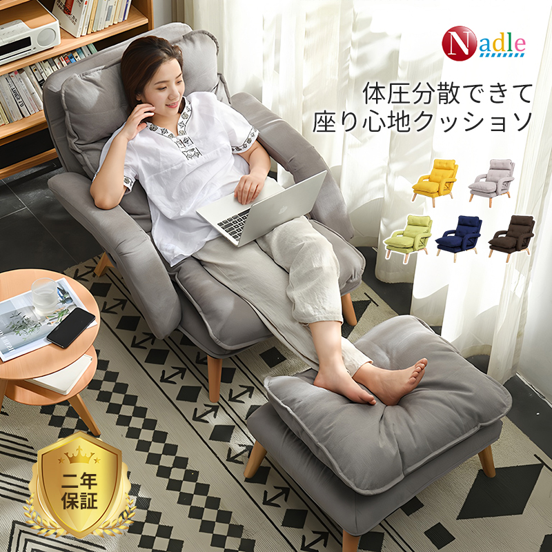 NADLE ソファ ソファー ソファベッド 一人掛け 一人掛けソファ ハイバック オシャレ 北欧 オットマン付き コンパクト フロアチェア チェア リクライニングチェア
