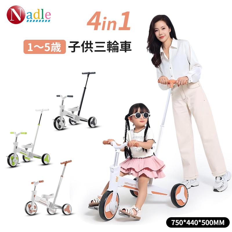 NADLE 子供用三輪車 一台多役 三輪車 1歳半から5歳まで 変身可能 ランニング バイク 押し棒付き 組み立て簡単 サドル調整可能 おもちゃ 乗用玩具 組み立て簡単