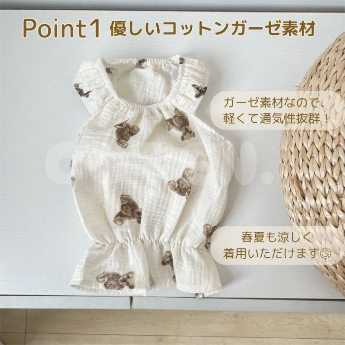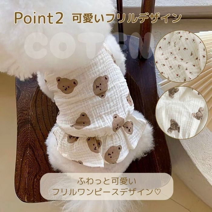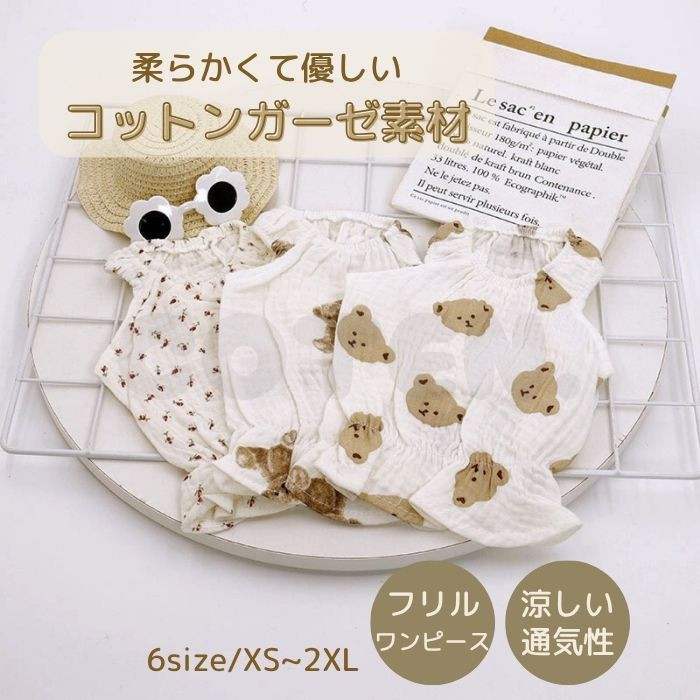犬 服 コットン ガーゼ ワンピース フリル 春 夏 涼しい 通気性 着せやすい 軽量 可愛い おしゃれ 優しい シニア 韓国風 部屋着 着脱簡単 スカート 猫 COTEN