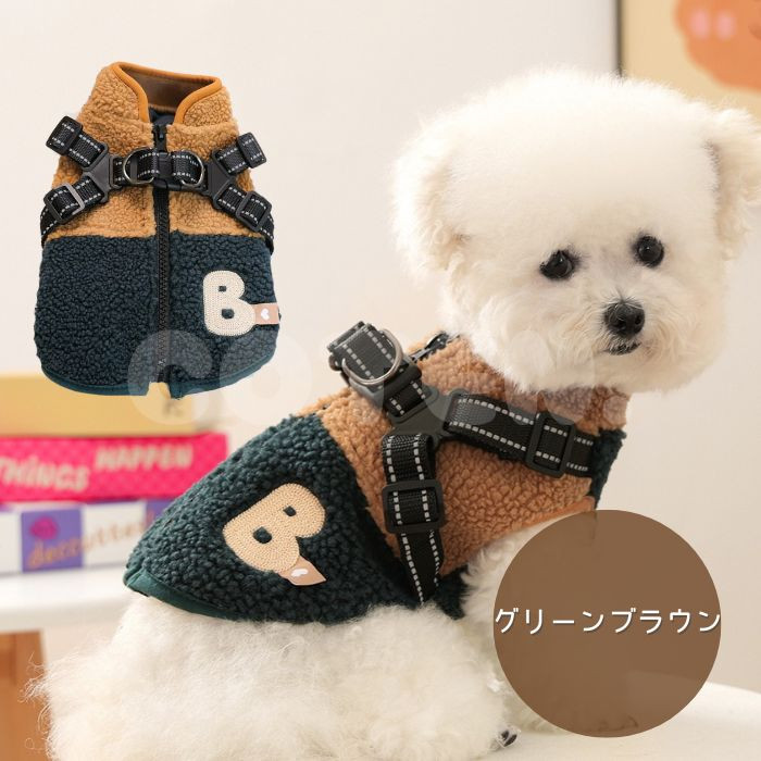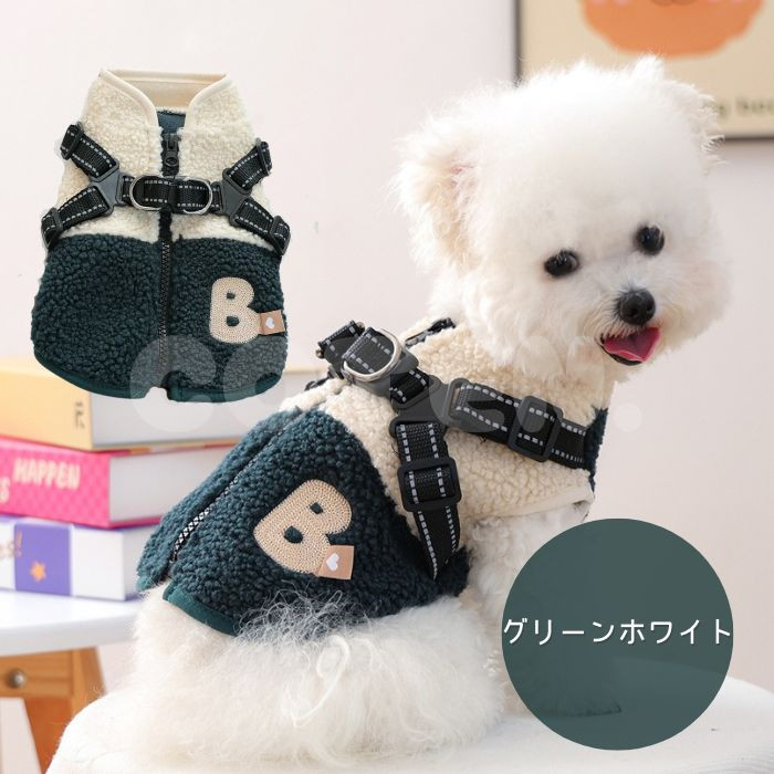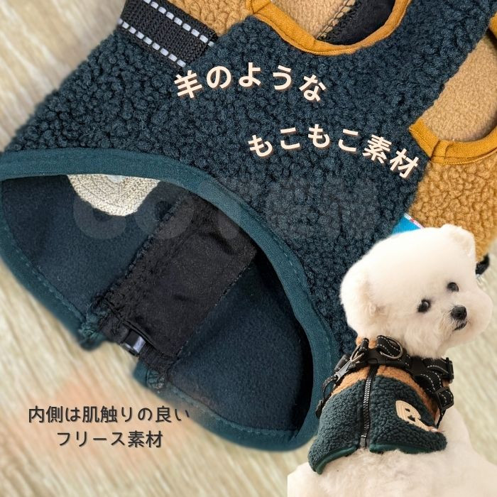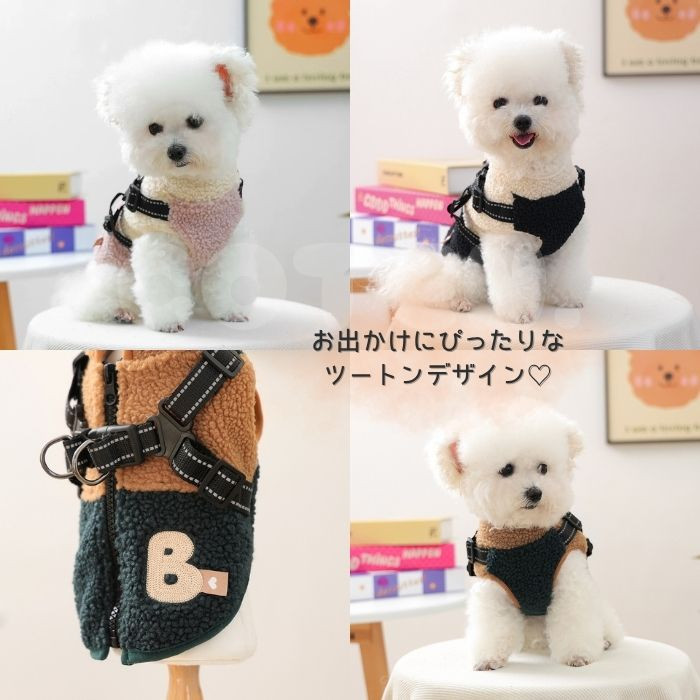 犬 服 冬服 ハーネス付き ボア ベスト ジャンバー アウター 背中開き 着せやすい 防寒 上着 着脱簡単 おしゃれ 可愛い ハーネス 秋 冬 COTEN