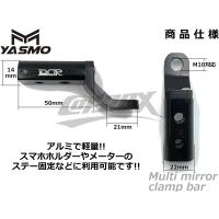 【YASMO】ミラータイプ クランプバー 汎用 10mm 穴 アルミ 製 バイク 原付 ハンドル メーターステー ブラケット スマホホルダー マルチホルダー (ブラック)