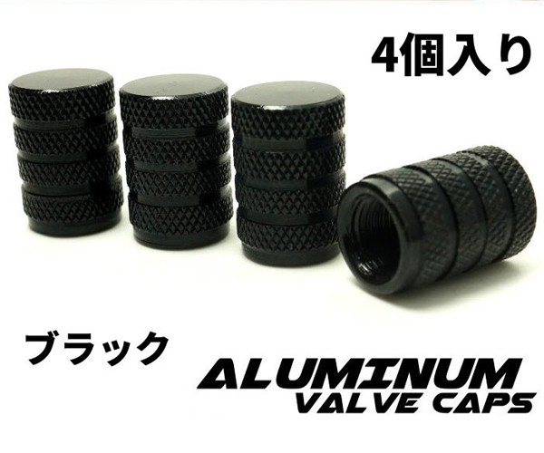 【YASMO】アルミエアバルブキャップ ホイール 自動車 バイク スクーター対応 汎用 カスタム ドレスアップ 軽量 アルマイト 4個セット サークル(ブラック)