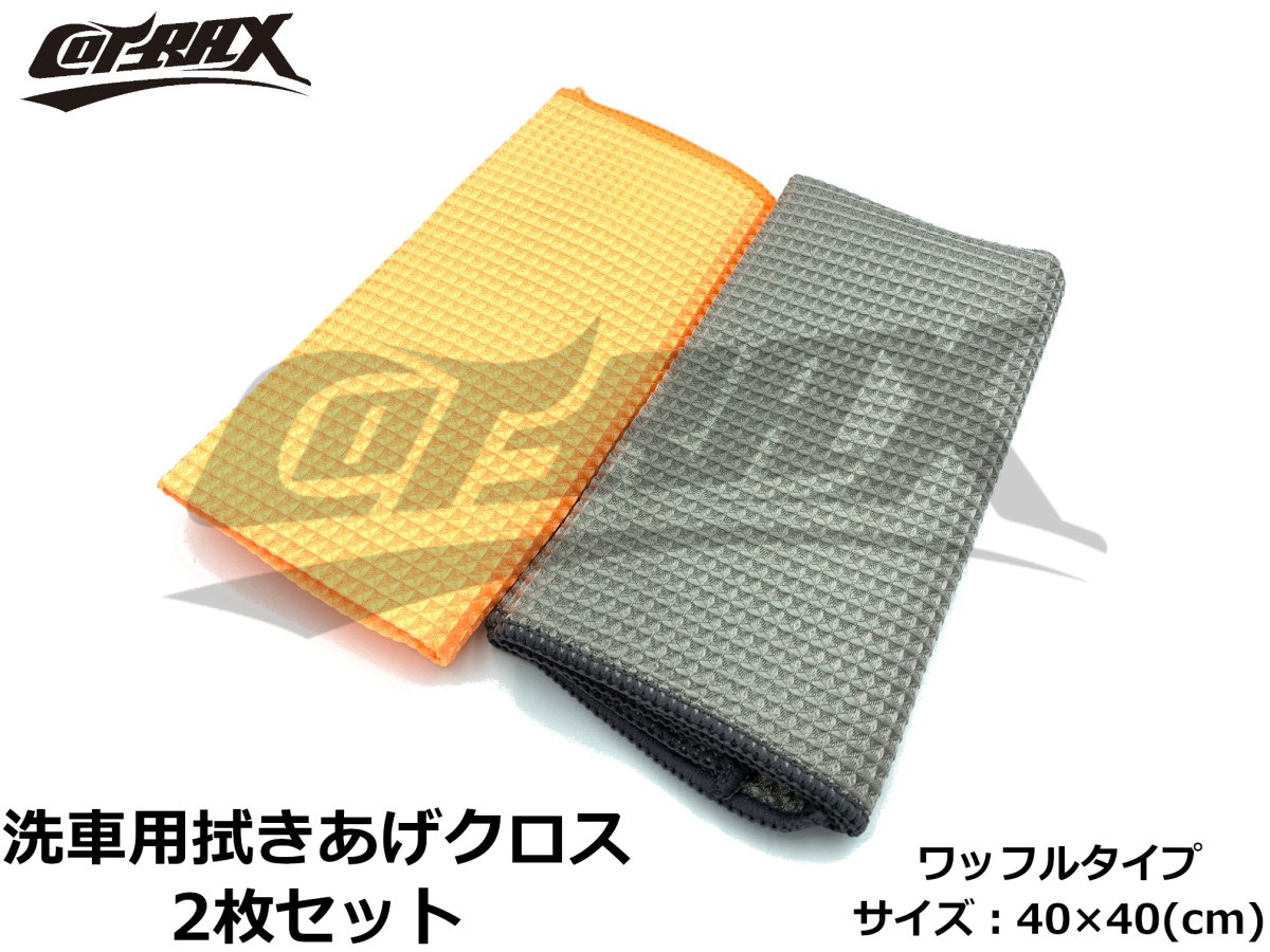 【COTRAX】洗車・拭き上げ用クロス2枚セット ワッフル生地タイプ 40×40cm 吸水 乾拭き 車内の掃除 家庭の掃除 台所 キッチン周りのお手入れにも!!