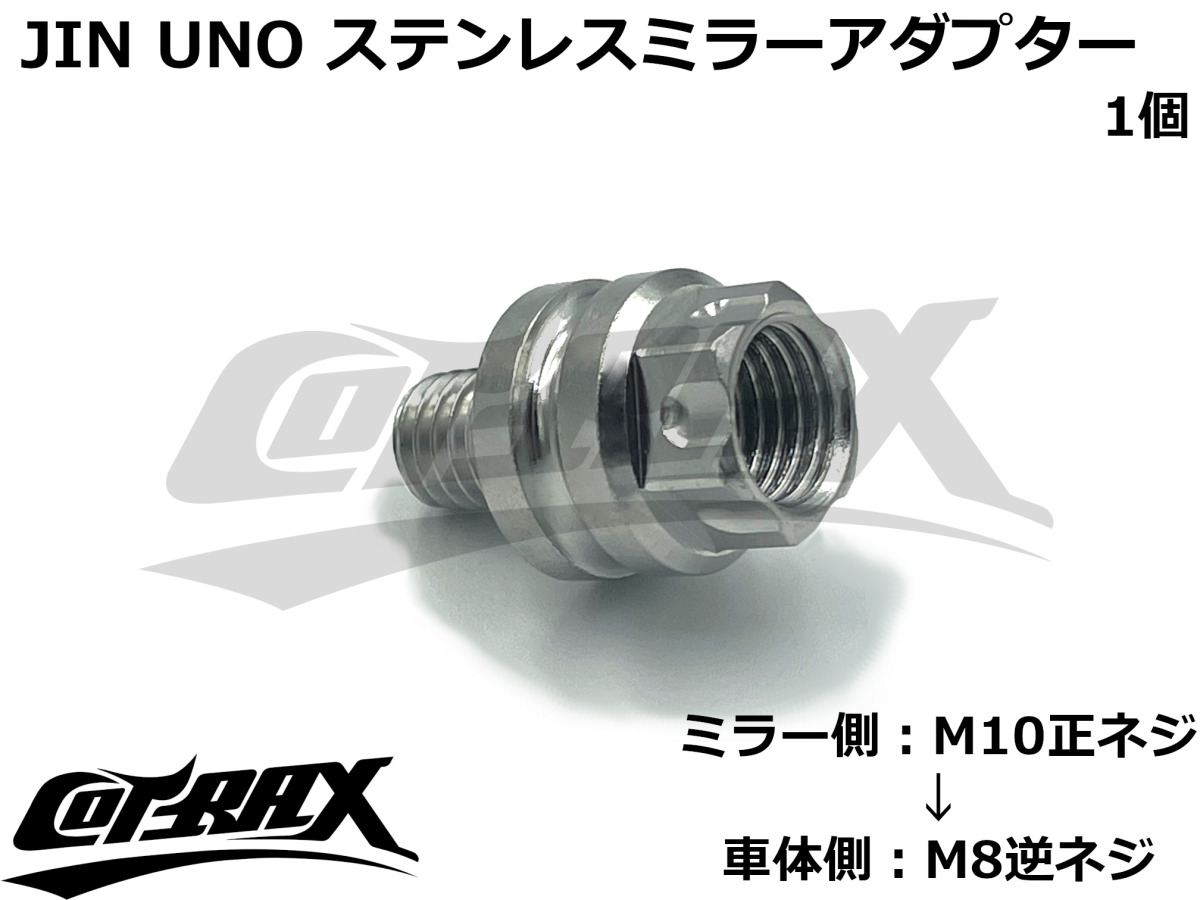 【JIN UNO】ステンレスミラーアダプター ネジサイズ・ネジ径・向きを 変換 汎用 スペーサー ネジ径変換 カスタム ドレスアップ (M10正ネジ→M8逆ネジ/シルバー)
