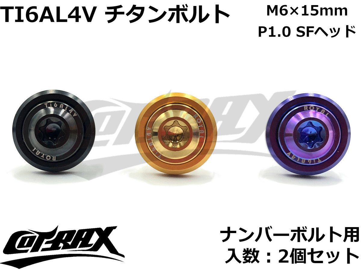 【COTRAX】ROYAL 64チタンナンバーボルト 全3色 2個セット M6×15mm SFヘッド トルクスタイプ TI6AL4V 軽量 カスタム ボルト 台湾製 ドレスアップ