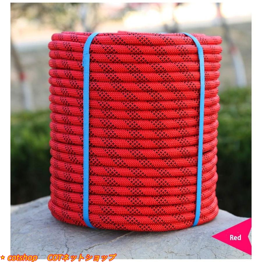 多用途ロープ 10mmクライミングロープ、耐摩耗性安全ロープ、ダブルカラビナ、ナイロンロープ、安全エスケープロープ、キャンプ、50M テントロープ