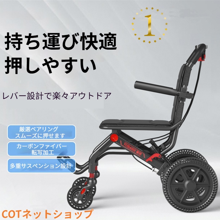 簡単に押して進められ、力が必要なく、飛行機に持ち込み可能な車いすです。