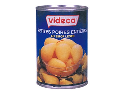 スペイン産の洋ナシ(サン・フアン種)の小粒のものを選りすぐりシロップ漬けにした製品。固形量210g。個数約5〜7個。